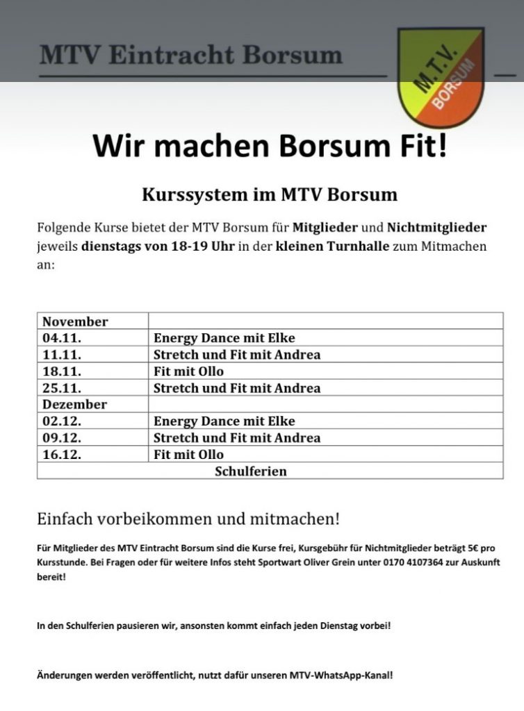 im MTV Borsum. Näheres siehe HIER