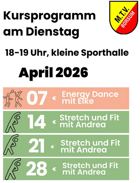Trainingszeiten beim MTV Borsum.