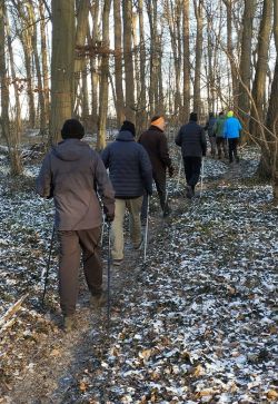 Jeden Montag treffen sich die Nordic-Walker zur gemeinsamen Runde. Ein „harter Kern“ von 8-10 Senioren ist immer dabei. Das Wetter spielt (fast) keine Rolle. Übrigens: Beim Walking wird auch Politik gemacht …..